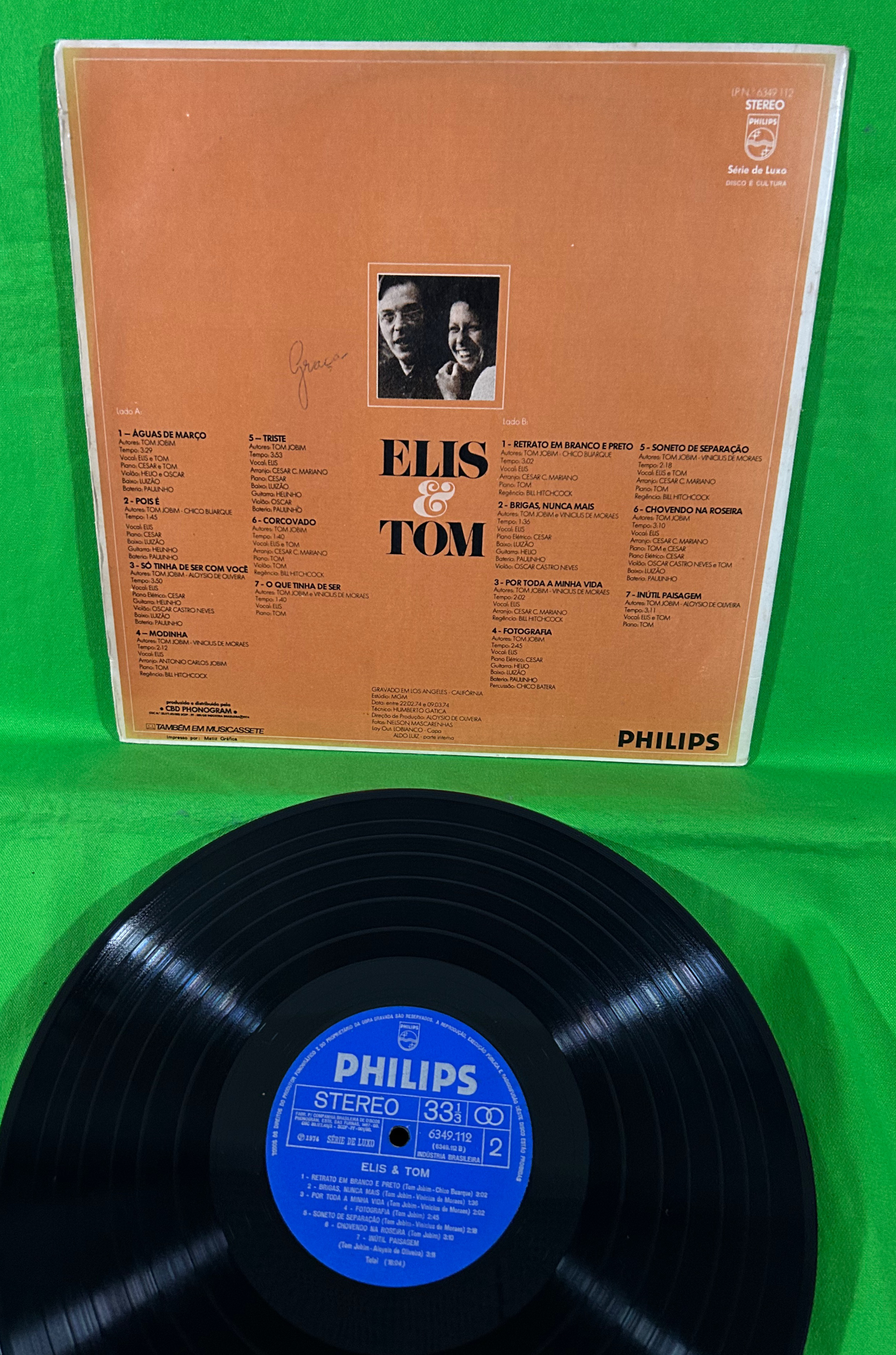 74年作。エリスが歌うジョビン作品集。プロデュースもジョビン自身。A1「Aguas de marco(3月の雨)」での2人の微笑ましいデュエットを始め、全体に素晴らしい。Producer – Aloysio De Oliveira。