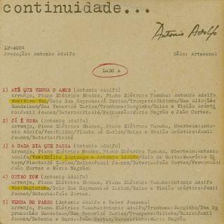 78年。『Feito em casa』LPから始まる自身のレーベルでの4作目。Viva Vozのコーラスも美しいA1"Ate que venha o amor"おすすめ。他も曲ごとにHyldon, Emilio Santiago, RegininhaらのゲストVo入りで、さすがにソングライティングもアレンジもレベル高い。