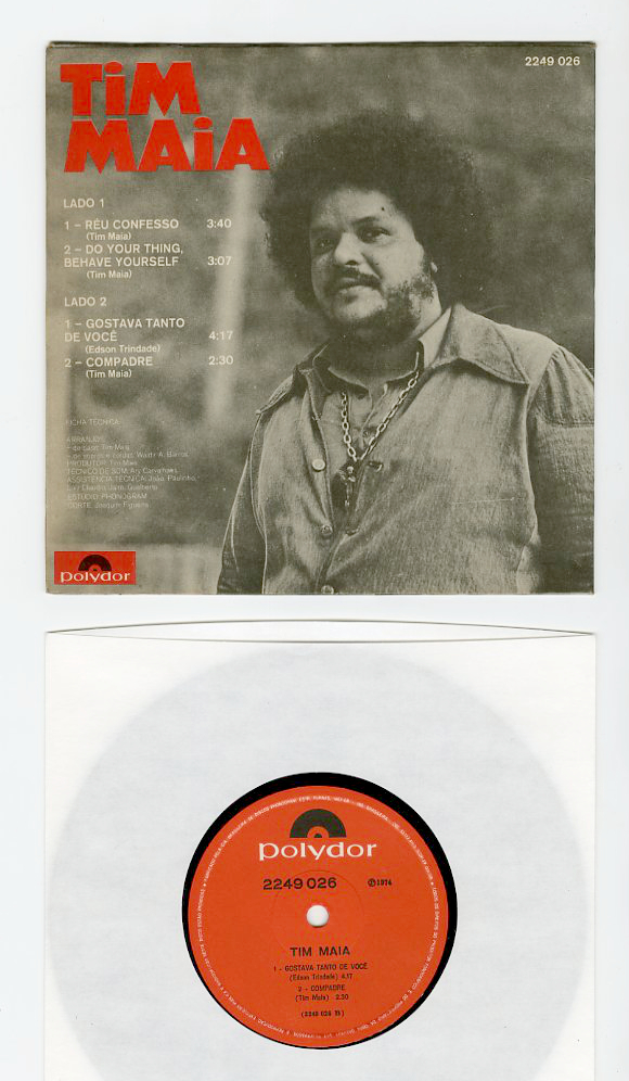 74年。ファンキー・ソウル大統領、チン・マイア。切なくファンキーなA1"Reu confesso"、B1"Gostava tanto de voce"(「貴方がとても好きだった、、」)の名曲2曲は最高。他の2曲も良い。