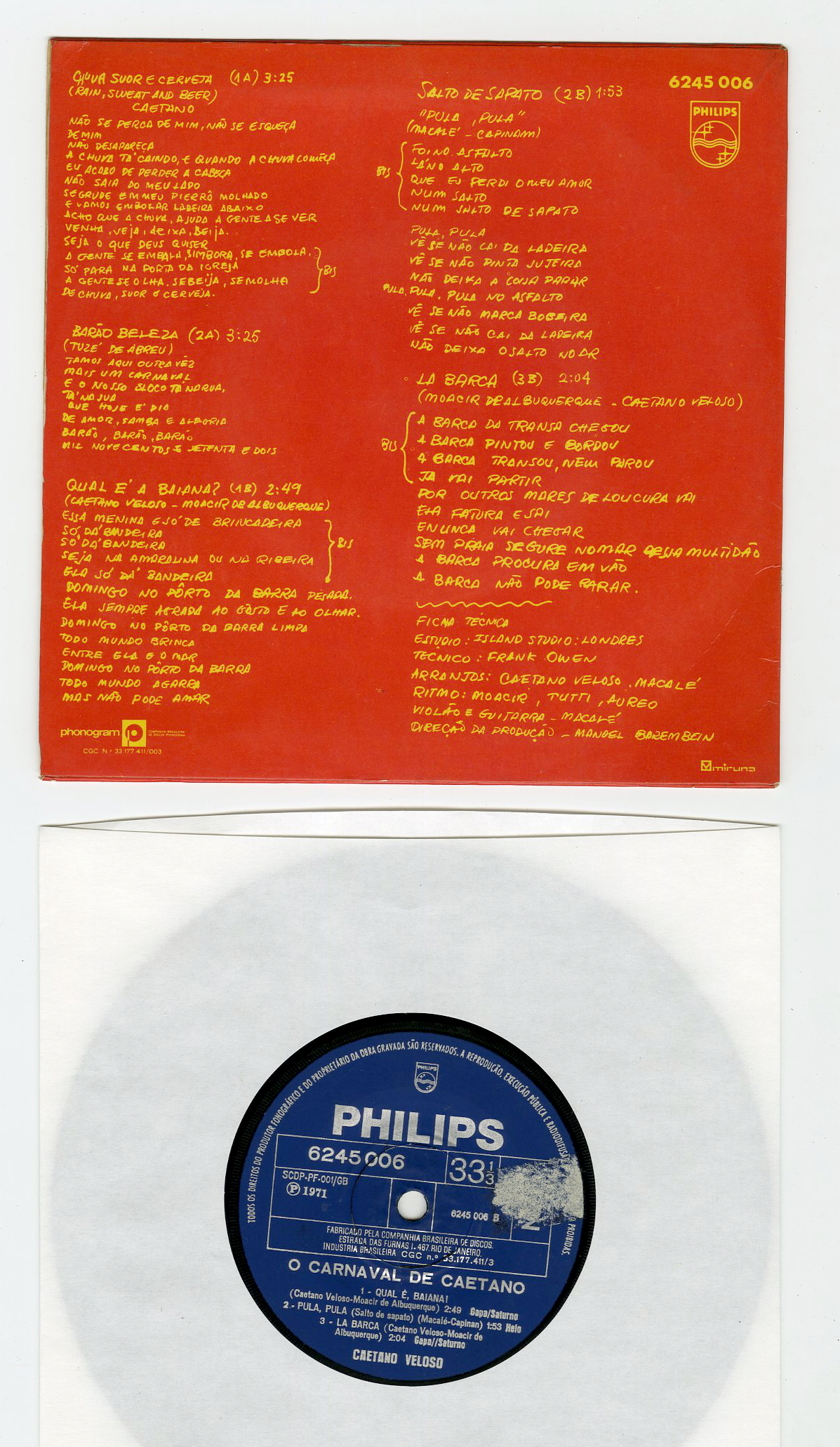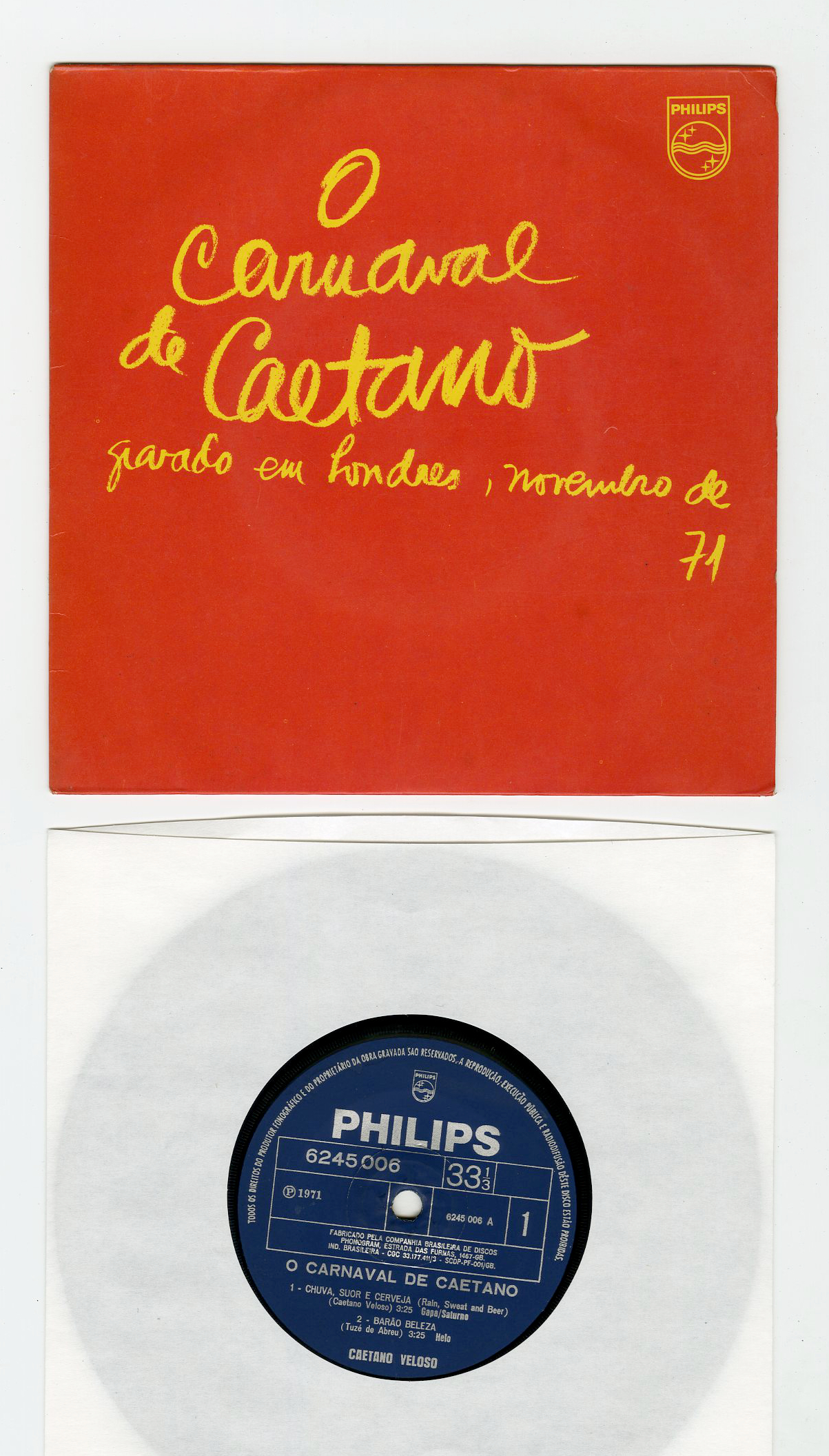 71年の5曲入りEP。A2「Barao Beleza」とB2「Pula,Pula」は『Muitos Carnavais』LPにも未収です。