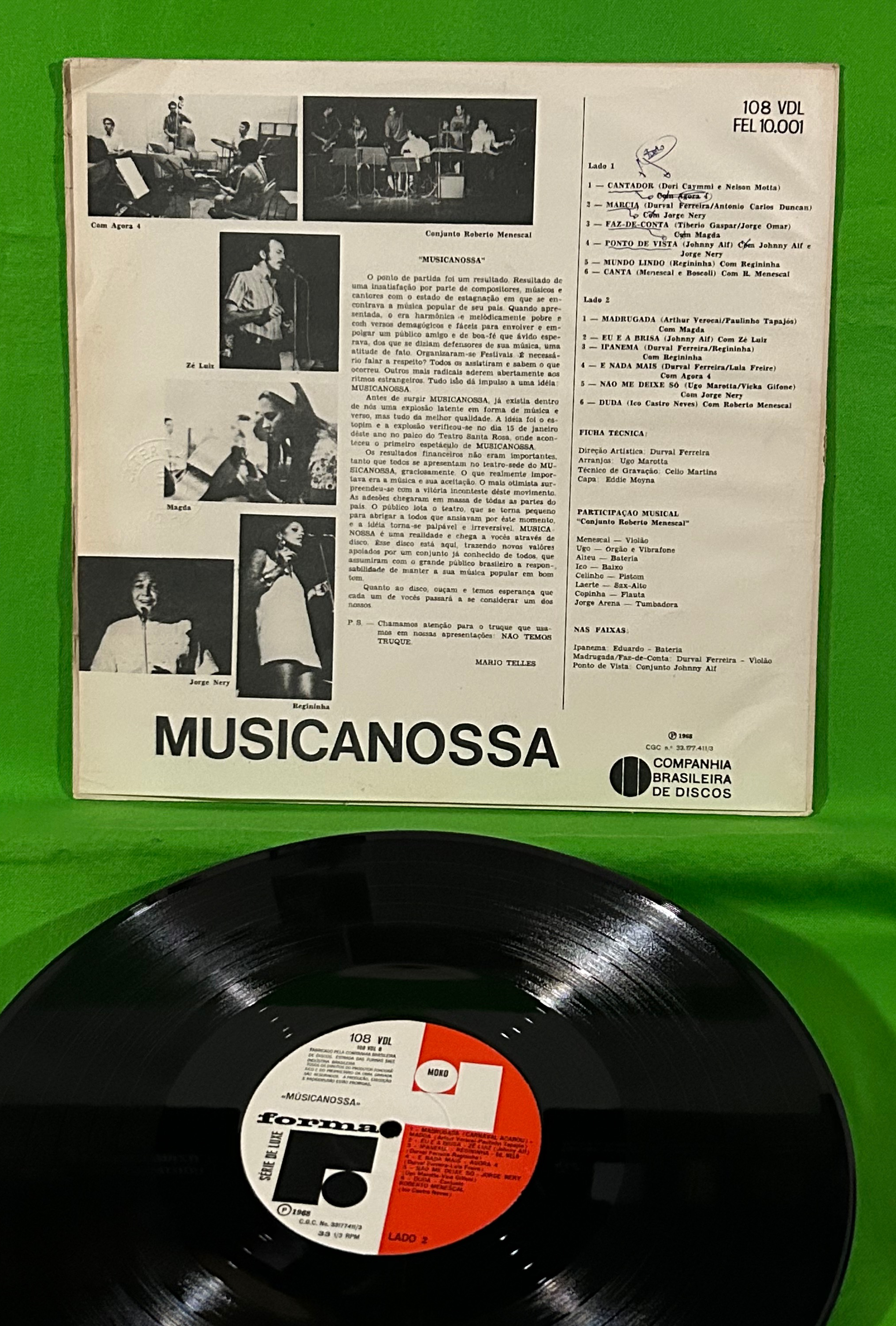 68年。「ムジカノッサ」のForma盤。コーラスが美しいAgora 4、可愛い歌声のMagda嬢、後にUmas e OutrasのメンバーとなるRegininha嬢などみなボサソフトロック的感触で素晴らしいし、Johnny AlfとJorge NeryのデュエットA4もとてもイイ感じ。演奏でConjunto Roberto Menescal、アレンジでUgo Marottaが参加。Producer [Direção Artística] – Durval Ferreira.