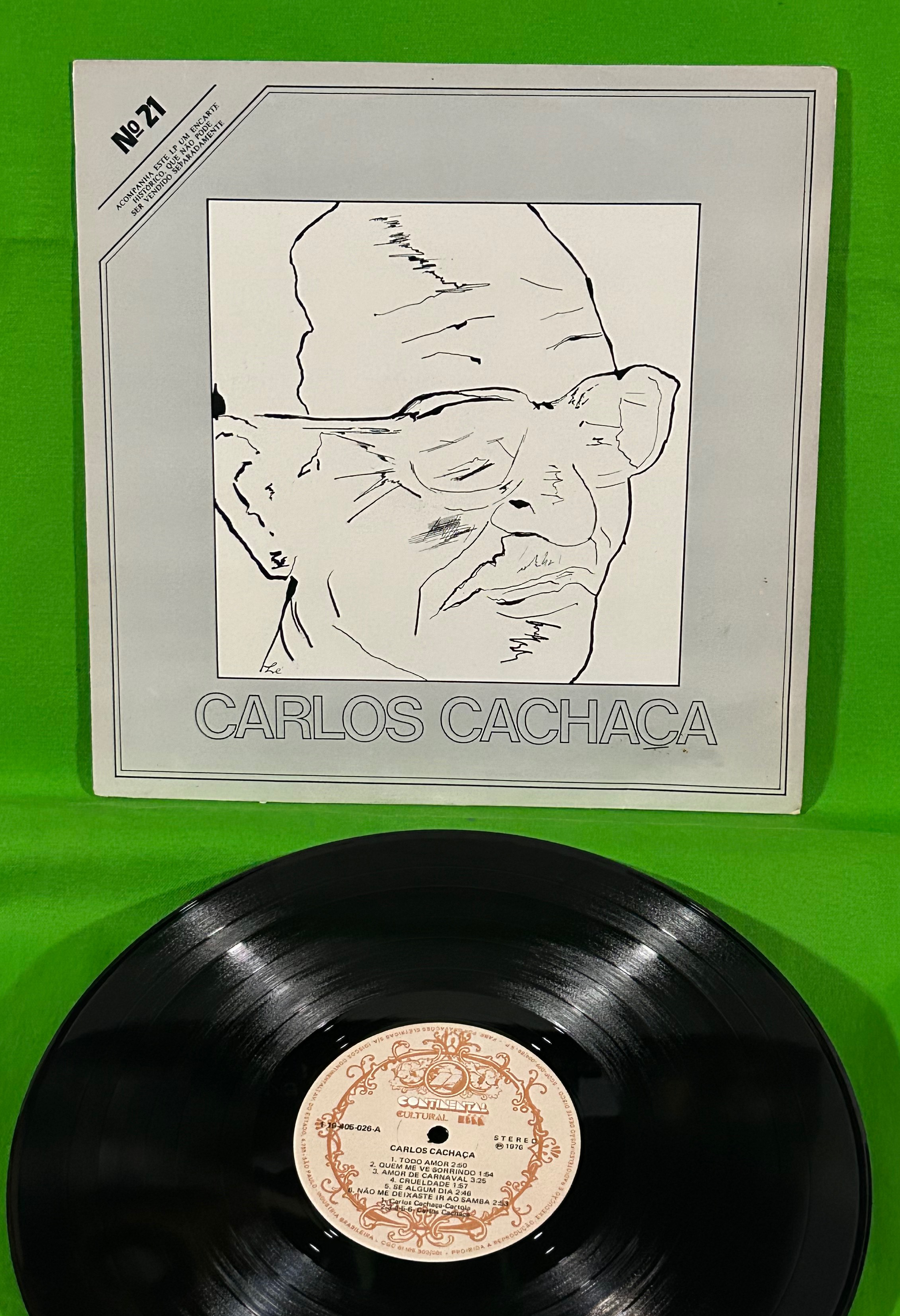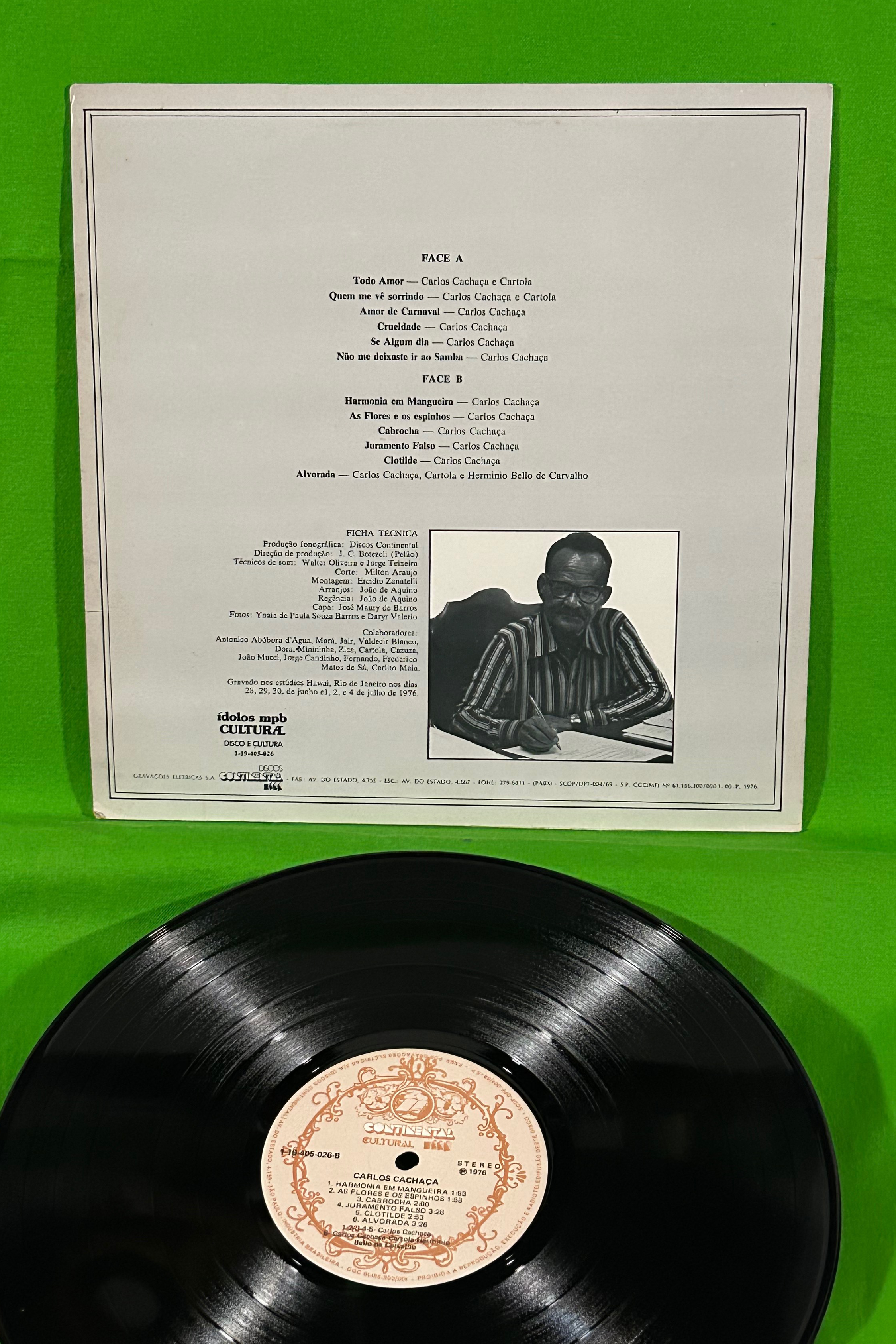76年。サンバ貴重盤。サンバ歌手/作家 Carlos Moreira De Castro、通称「カルロス・カシャーサ」(1902 - 1999)は500 以上の作品の作者で、「マンゲイラ」の創設メンバーの一人であり、マンゲイラのもう一人の巨匠であるカルトーラの主要パートナーとされています。当作は彼の唯一のソロアルバムで、「Quem Me Vê Sorindo」(Cartolaとの共作)や「Juramento Falso」などの珠玉の曲が含まれています。Recorded in June 28, 29, 30 and July 1, 2, 4, 1976.