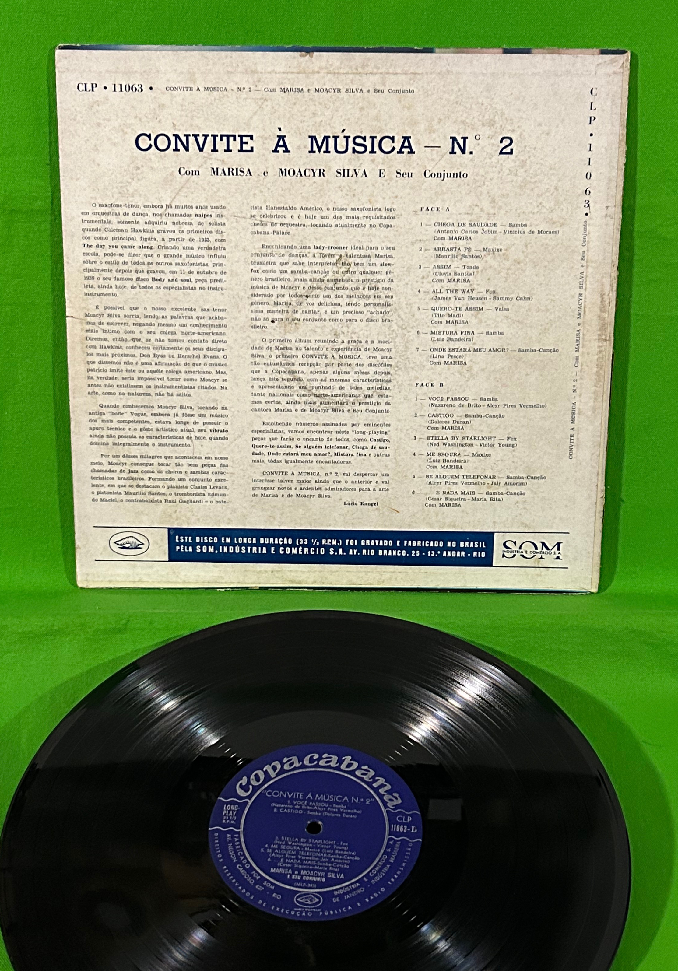 58年?。「ガタ・マンサ(おとなしい猫)」の愛称でも知られる女性歌手 Marisaの初期作。Moacir Silvaのコンジュントとの共演盤。A1「Chega de saudade」やTito Madi, Dolores Duran曲などのブラジル曲と洋楽曲が混在してます。当時のボアッチ(ナイトクラブ)はこんな感じだったのでしょうか。