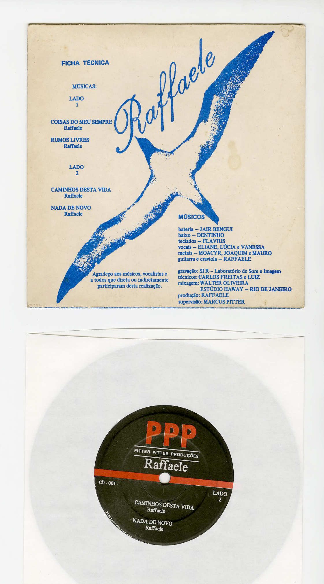 年代不明(80年代前半?)。詳細不明の男性SSWの自主盤7インチ。やや地味ながら、なかなか良質。MPB〜AOR〜フォークロック的な感じ。A2とB2は少しグルーヴィーな感触。